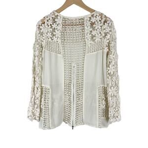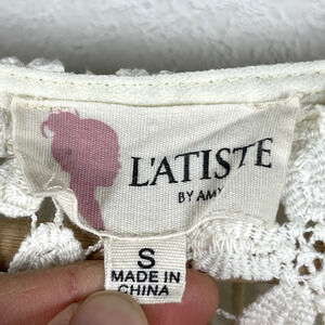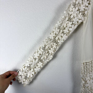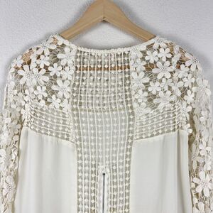 L'atiste Crochet Lace Top Womens Small Cream Blouse Sheer Long Sleeve