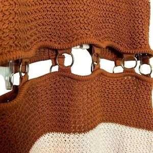L’atiste Crochet Striped Brown & Pink Retro Style Dress w/Ring Waist Cutout NWT