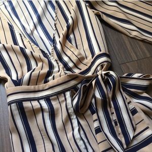 By Latiste / amazing cream navy and white stripe wrap maxi dress / 100 polyester / 3/4 sleeves / 2 front pockets / waist side tie / for reference, a size small: 58" length from shoulder neck to hem, fits xs to small / if you need measurements for other sizes let me know! / new and never worn / shop my closet and bundle to save on shipping