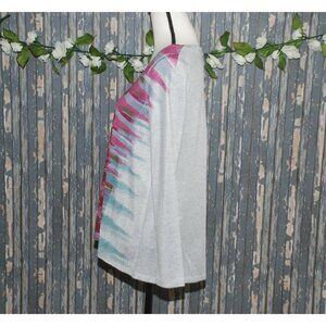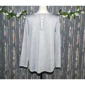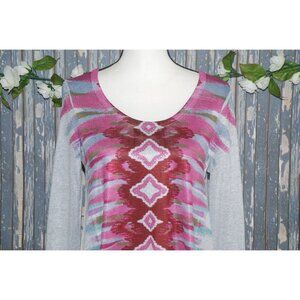 Latitude 10 Ladies Gray Pink & Red Knit Tunic Top Size S Studded Lattice Back Lo