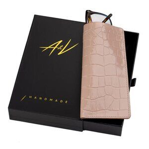 Elevate your eyewear routine with this sleek glasses case made from embossed calfskin. It offers a textured, exotic grain and soft interior—all with a slim profile.