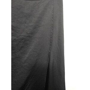Lattelier Black Silky-smooth Flowy Midi Split On Side Skirt With Side Zipper Clo