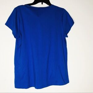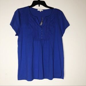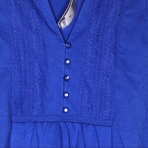 LATTICE & LACE TOP. Dark blue. Size M. V neck. Short sleeves.