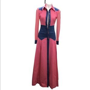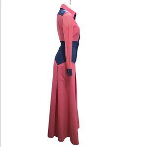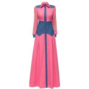 Lattori Color Block Slim Waist Maxi Dress Pink Crimson Denim Insert NEW Size XS