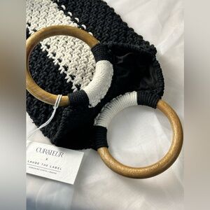 Laude The Label Gabby Macrame Clutch Bag Black White Stripe NWT
