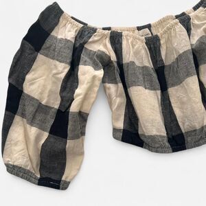 Laude the Label 100% Cotton Checkered Off-Shoulder Puff Sleeve Top Cottagecore S