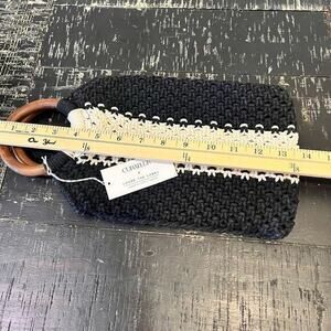 Made ethically and sustainably by Indian artisans, this natural cotton and acacia wood handbag is lined to keep all your essentials secure and features an off-white-and-black stripe for a bold touch that still works with everything in your summer wardrobe.