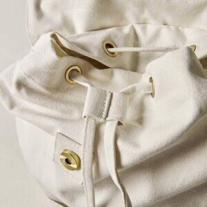 Questions? Leave a comment below! This versatile Laude the Label backpack is a must-have for any fashion-forward woman. The nude exterior color with gold hardware gives it a chic look, while the drawstring closure and adjustable straps ensure practicality. The backpack has inner pockets and additional pockets for extra storage. Made with high-quality cotton canvas material, this backpack is durable and built to last. The convertible feature allows it to be worn as a backpack or a shoulder bag, making it perfect for any occasion. Ideal for women who are always on the go, this Laude the Label backpack is a new, stylish addition to any wardrobe.