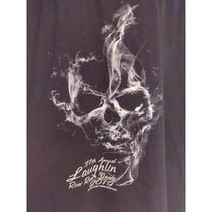 Laughlin 37th River Run 2019 Flaming Skull Cut Off Sleeveless Biker Harley-Davidson Black Button Down Shirt Mens 3XL