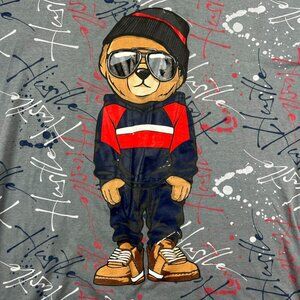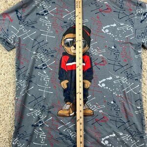 Launder by Bailey Apparel Gray Teddy Bear Shirt Paint Splatter Cool T Shirt Crew
