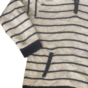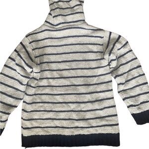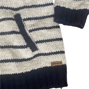 Laundromat Navy and Beige Striped Wool Chunky Knit Pullover Hoodie. Size Large