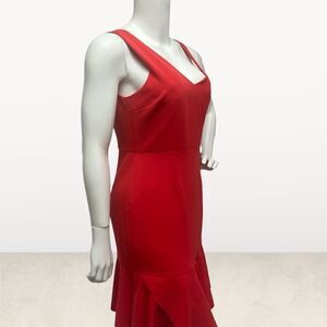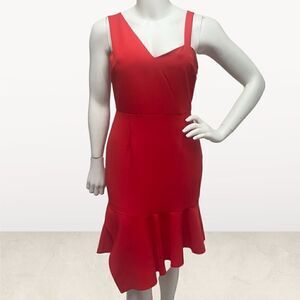 Laundry Asymmetrical Sleeve Ruffle Bottom Red Dress