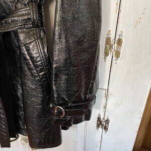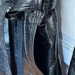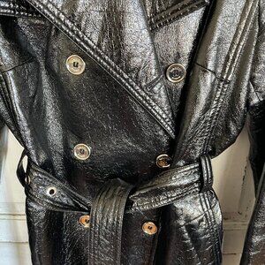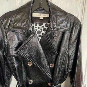 Laundry Black Double-Breasted Rain Trench Size L with Silver Snap Front & Belt