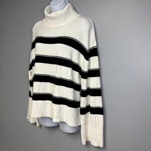 Laundry Black White Stripe Cozy Wide Sleeve Turtleneck Sweater Womens Sz L