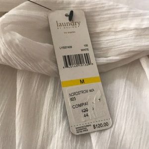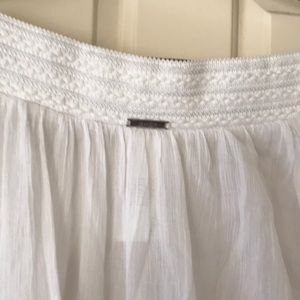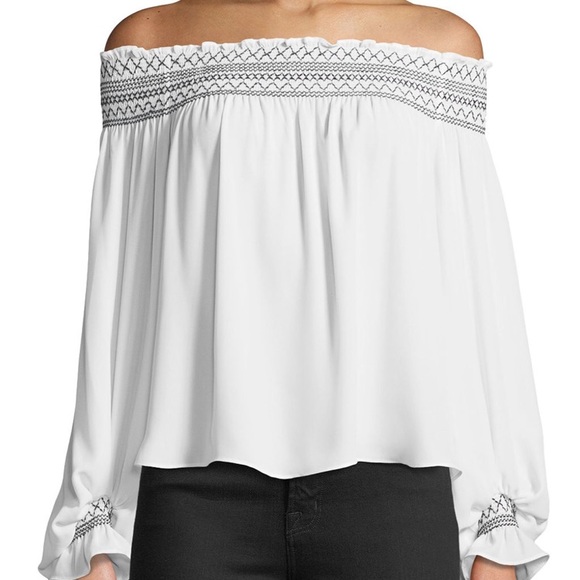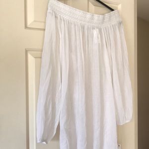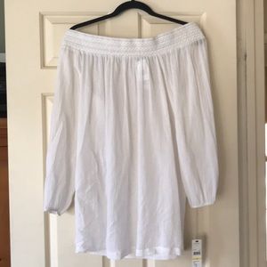 A very comfy, easy to wear, White off the shoulder blouse with 3/4 sleeves, somewhat sheer