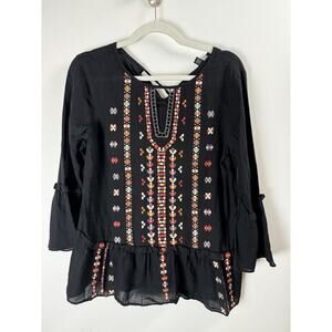 Laundry Bohemian Embroidered Dark Fall Floral Whimsygoth Preppy Peplum Blouse