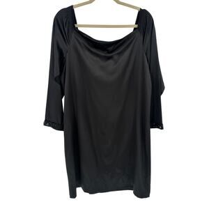 This elegant Laundry By Design dress is perfect for any special occasion! Made from 100% silk satin, this knee-length shift dress features 3/4 sleeves and beautiful embellishments. The classic black color makes it a versatile addition to your wardrobe.
