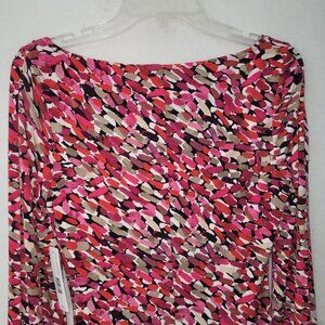 Laundry By Design Dress Womens 6 Pink Multicolor Ruched Split Sleeve Sheath