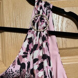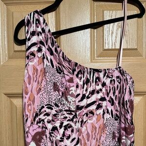 All over animal print one shoulder formal dress one shoulder with a golden metal accent