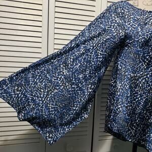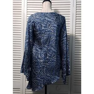 Laundry By Shelli Segal Asymmetric Top Women's Small Blue Print Flare Sleeve Lightweight