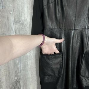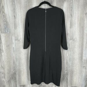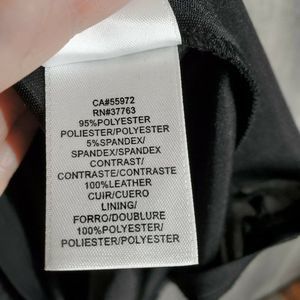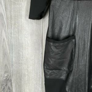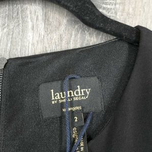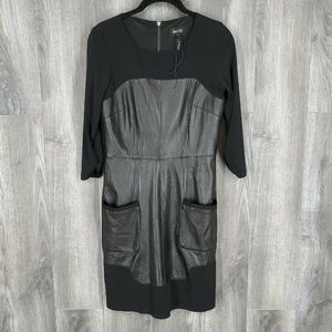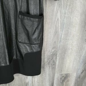 Chic black mini dress by Laundry By Shelli Segal. Features faux leather front panel and pockets. Perfect for a stylish look.