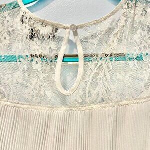 Laundry By Shelli Segal Blouse White Lace & Pleats Long Sleeve Feminine M