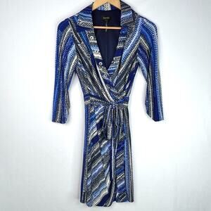 Laundry By Shelli Segal Blue Pattern Faux Wrap Dress 2/XS