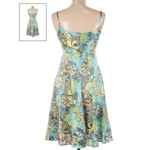 Laundry by Shelli Segal blue, yellow with brown accent floral dress size 6, a beautiful satin material, empire waist, A-line fit and flair shape - hits at the knees. Hello spring!!!