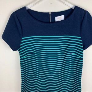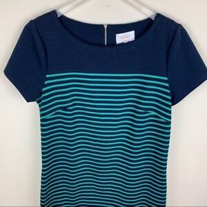 Laundry By Shelli Segal Women’s Green/Blue Striped Colorblock Sheath Dress Sz S EUC. Great color and comfort for work/career and or brunch/parties. Flattering tailoring. Please see photos for additional details. Pit to Pit 18“ Length 37“ Sleeve 6.5“