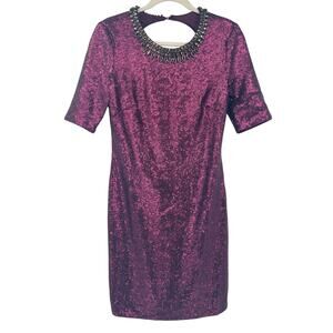 Laundry By Shelli Segal Evening Party Embellished Sequin Cocktail Dress in Light Boysenberry Purple. Size 4.