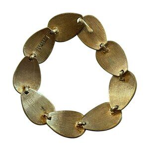 A vintage-inspired gold-tone bracelet with textured oval links, exuding timeless elegance. Ideal for adding a touch of sophistication to ensembles.