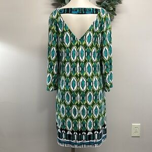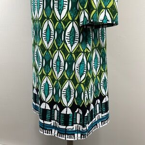 Laundry By Shelli Segal Green Abstract Geo Print 3/4 Sleeve Jersey Shift Dress S