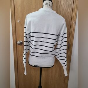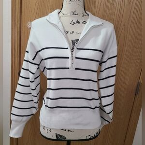 Laundry By Shelli Segal Half Zip Preppy Nautical Coastal Grandma Striped Sweater
