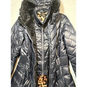Laundry By Shelli Segal Midi Down 2 in 1 Jacket Women's Medium Navy Blue Hooded.