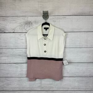 Laundry By Shelli Segal Knit Sleeveless Sweater Collar Button Top Size Medium