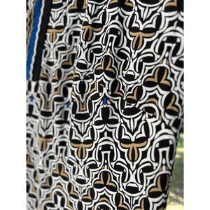 This Laundry By Shelli Segal dress is a vibrant expression of style and elegance, featuring an intricate geometric design in a rich tapestry of blues, greens, and blacks. The knee-length cut provides a flattering silhouette, while its soft polyester material ensures comfort with every wear. Ideal for those who appreciate bold patterns and sophisticated fashion, this dress seamlessly transitions from day to night.