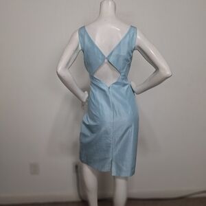 Laundry By Shelli Segal NEW Quiet Luxury Blue 100% Silk Coquette Sheath Dress 12