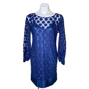 Laundry By Shelli Segal NWT $195 Night Sky Polka Dot Sheer Overlay Dress, Size 8