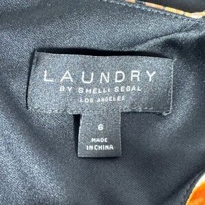 Laundry By Shelli Segal NWT Black/Gold Floral Bouquet Ruffle Hem Midi Dress Sz 6