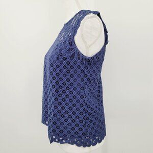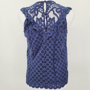 Laundry By Shelli Segal Navy Eyelet Lace Sleeveless Top