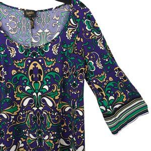 Laundry By Shelli Segal Paisley Mini Dress Womens Size 10 Bell Sleeve Stretchy