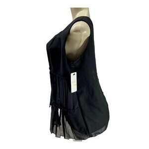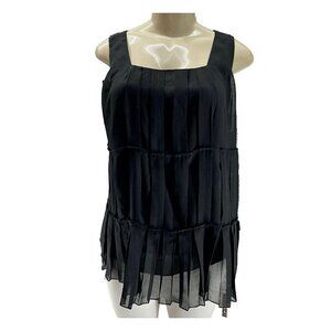 Laundry By Shelli Segal S Sheer Black Lined Tier Pleated Detail Sleeveless Top