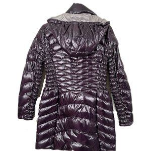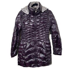 Laundry By Shelli Segal Shine Hooded Puffer Coat Size M 50% Down Eggplant Color