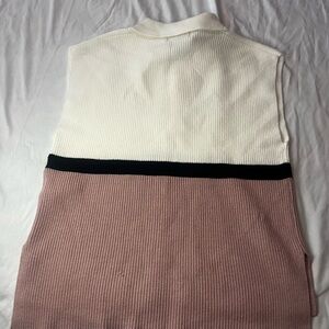 Elegant white knit top featuring a black decorative accent. Perfect for a chic look.