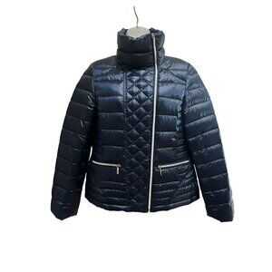 Laundry By Shelli Segal Womens Navy Quilted Down Jacket Size S With Asymmetrical