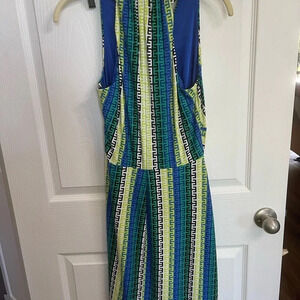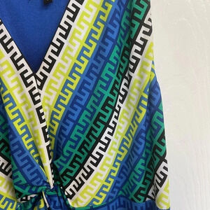 Gorgeous multicolor blue/green Greek key design on dress