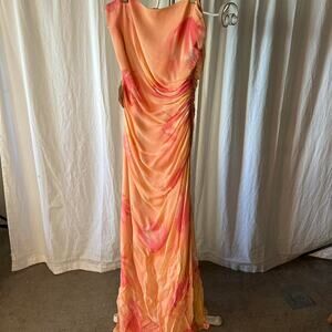 Laundry By Shelli Segal Women's Small Dress Orange Peach Silk Gown NWT Vintage