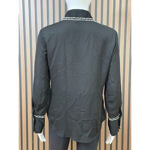 Laundry By Shelli Segal Women's XS Black Button-Up Polyester Shirt Boucle Trim