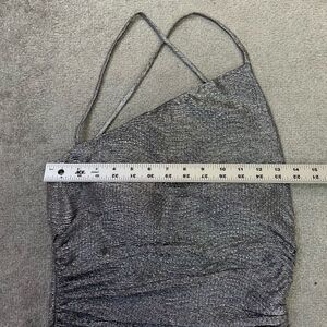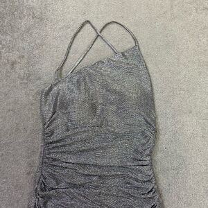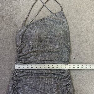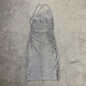 Laundry By Shelli Segal Womens Ruched Sparkly Strappy Back Bodycon Dress Silver Size 8 NWOT