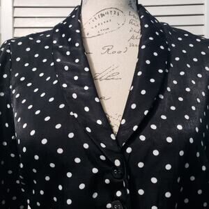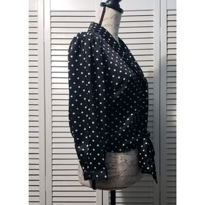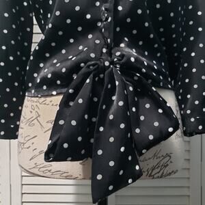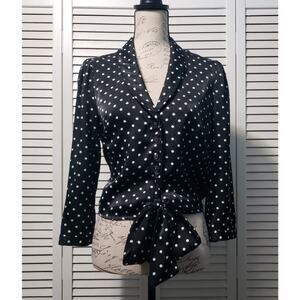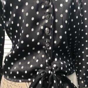 Laundry Semi Cropped Button Front Blouse Women's Small Black & White Polka-dot Tie Front 3/4 Sleeve Button Cuff. Elastic Waist Collar